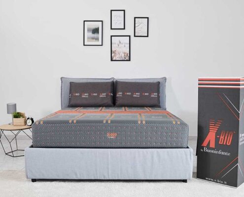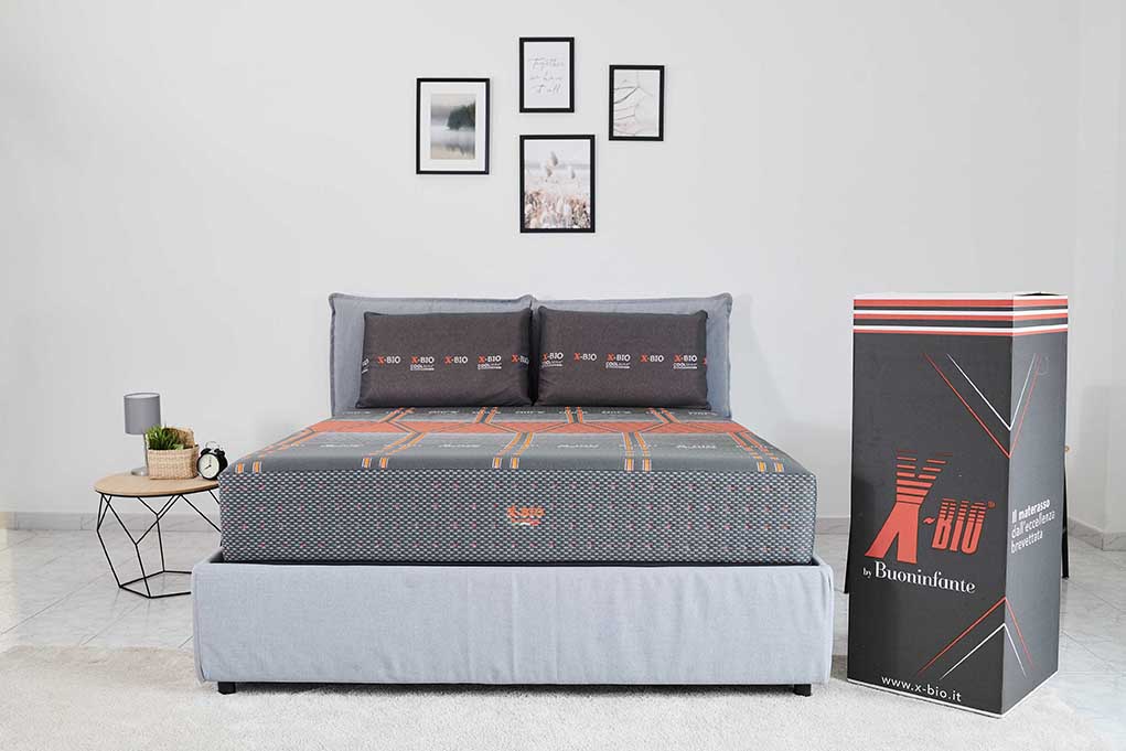 Qualità del Riposo: i materassi della linea X-Bio di Gruppo Buoninfante sono progettati per garantire un riposo ottimale. I materassi della linea X-Bio sono un prodotto innovativo hi- tech, brevettato e testato per il mal di schiena e per il recupero delle energie. Il rivestimento è triplo strato composto da fibre da fibre hi-tech (Coolmax, Airmesh e telina hi-tech) che favoriscono la termoregolazione mantenendo così una temperatura corporea ideale per un riposo rigenerante.